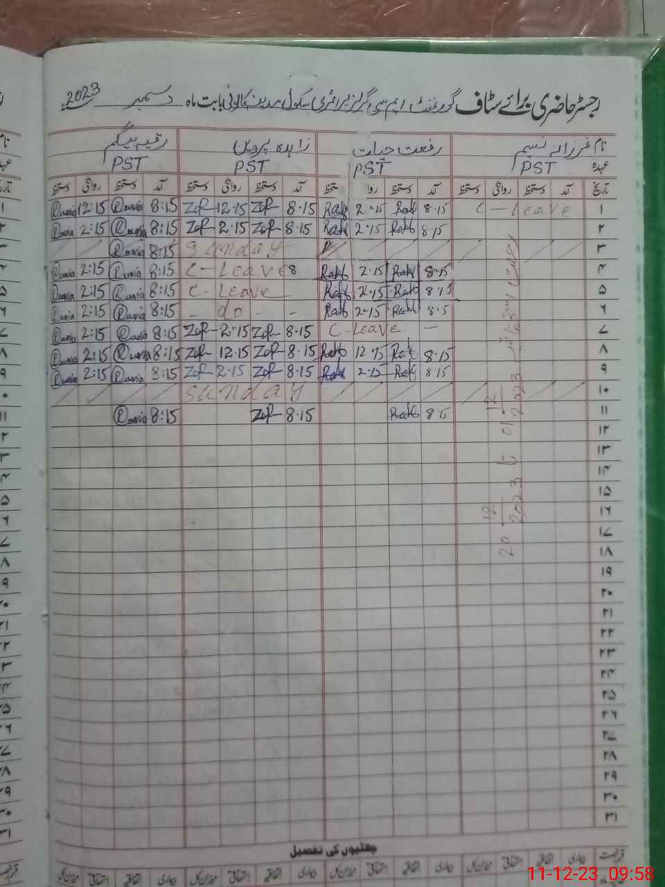 | CNIC | Full Name | Designation | R/C | Absence During Last Calender Month |