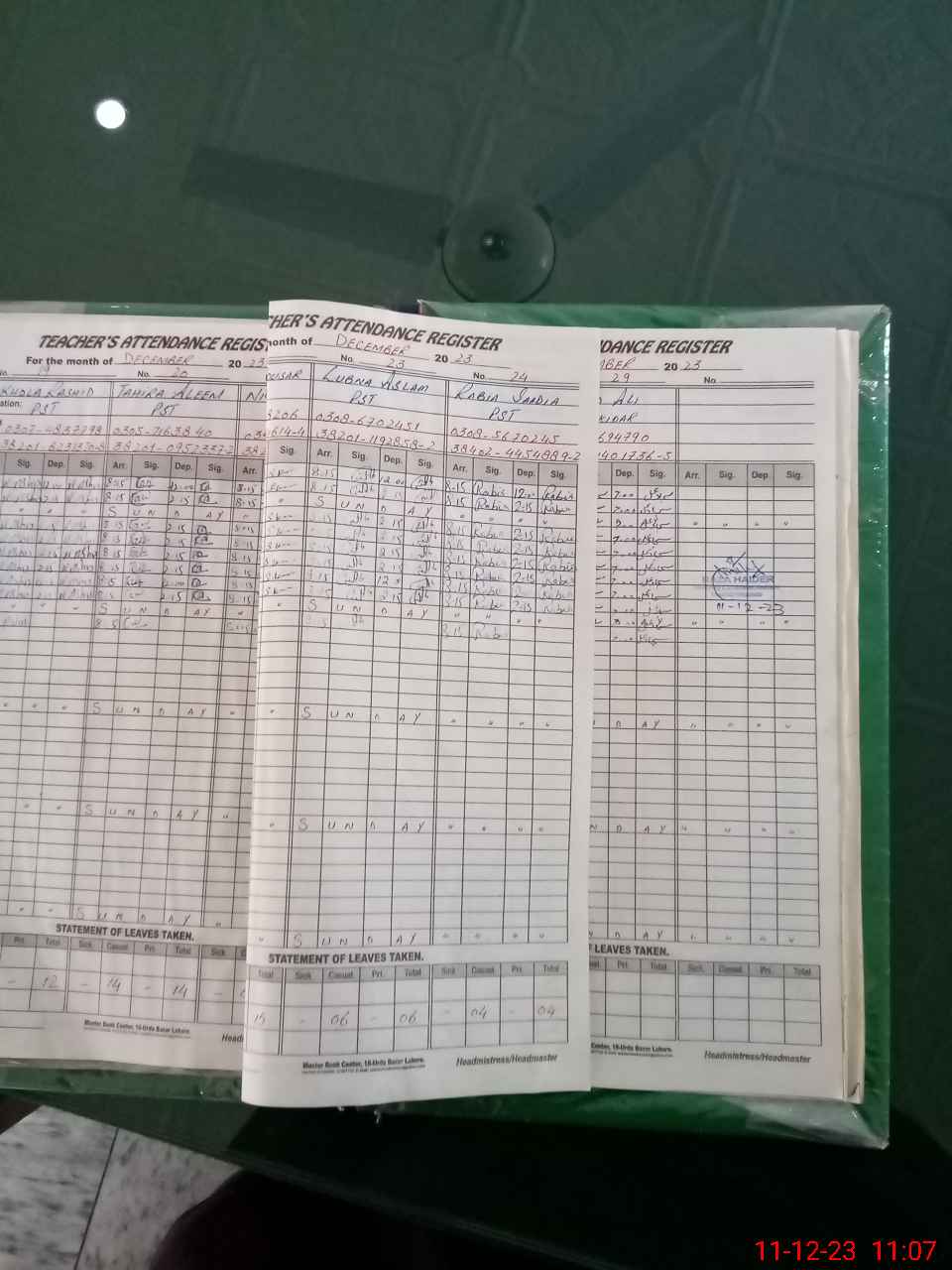 | CNIC | Full Name | Designation | R/C | Absence During Last Calender Month |