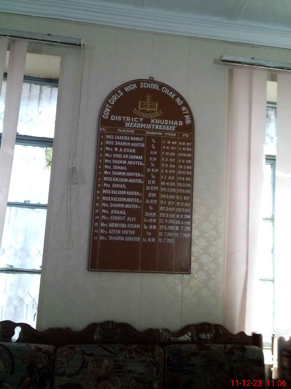 | Name: Te**** Gh**** Designation: (School Headmaster's/Headmistress's) Sr Head Mistriss Phone/Cell Number: 03**** |