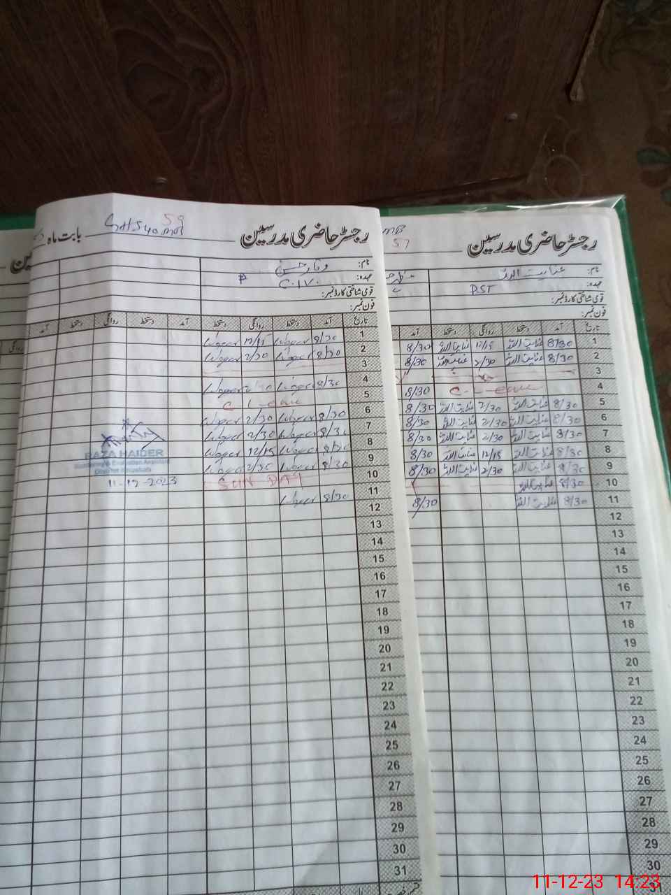 | CNIC | Full Name | Designation | R/C | Absence During Last Calender Month |