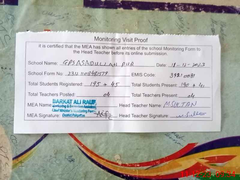 | EMIS Code: 39210081 | Name of School: GPS ASADULLAH PUR | |||