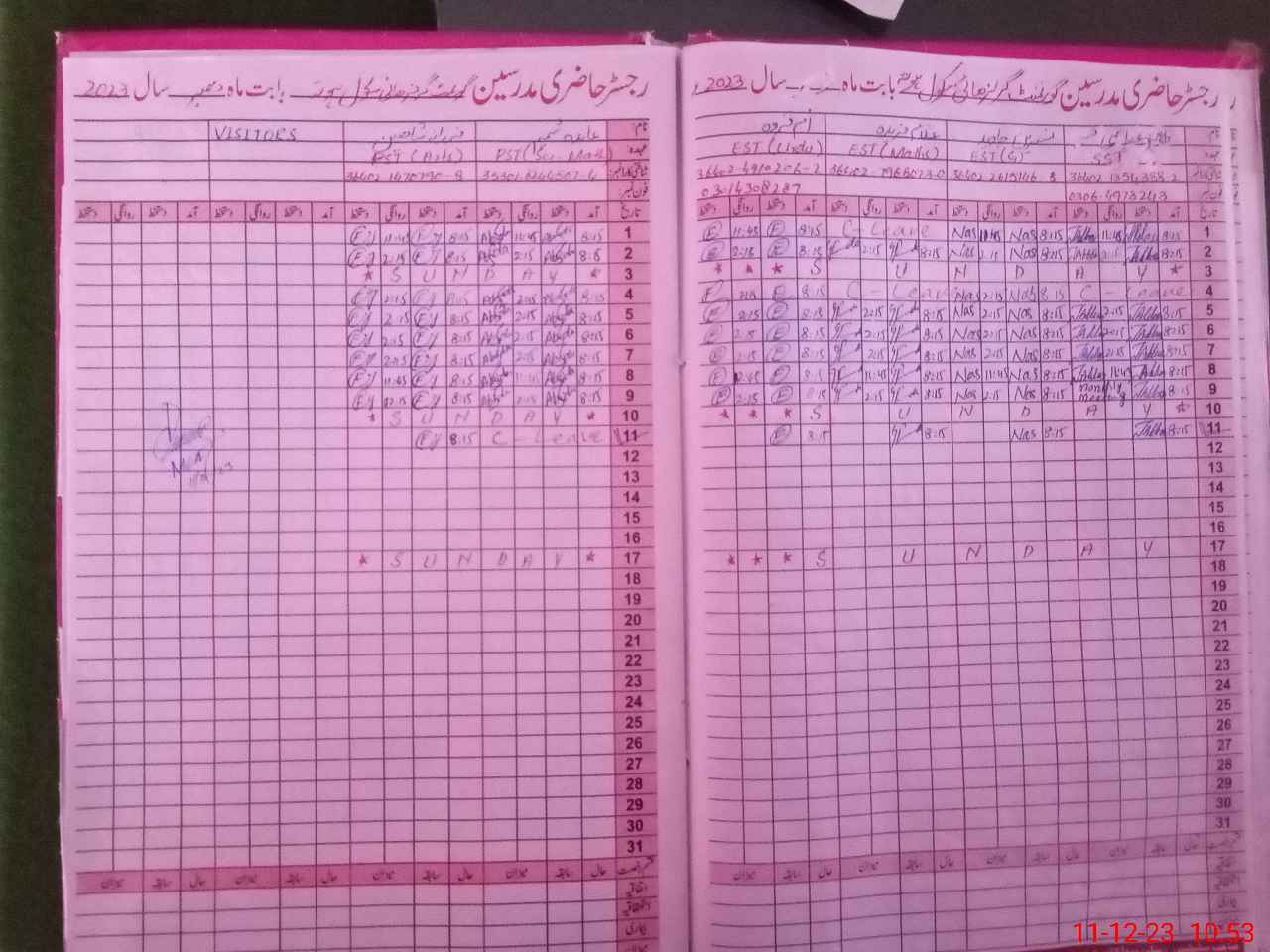 | Name: Ab**** Sh**** Designation: (School Headmaster's/Headmistress's) PST Phone/Cell Number: 03**** |