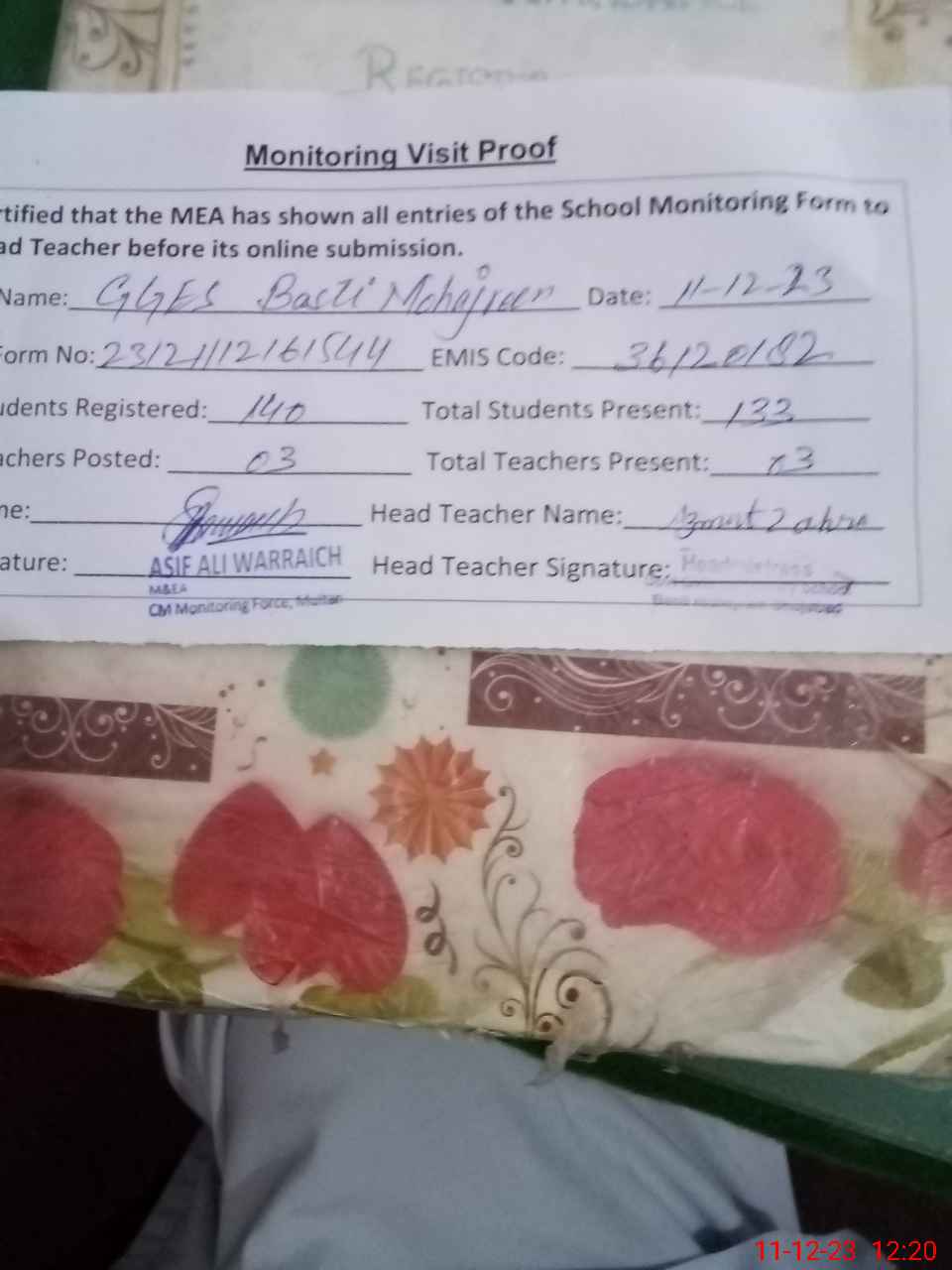| EMIS Code: 36120182 | Name of School: GGES BASTI MUHAJREEN P/O KANWARA SHUJABAD | |||
