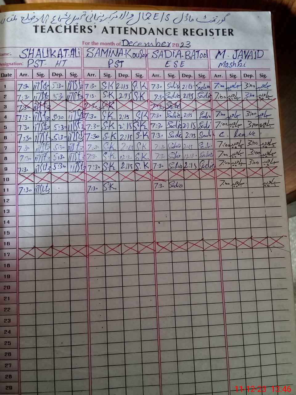 | Name: Sh**** Al**** Designation: (School Headmaster's/Headmistress's) PST/PTC/JV Phone/Cell Number: 03**** |