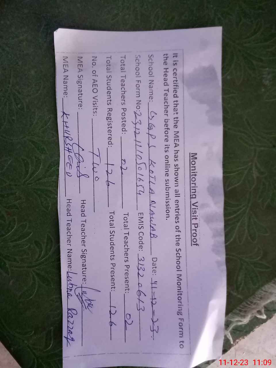 | EMIS Code: 31320613 | Name of School: GGPS NAWAB KOTLA NAWAB | |||