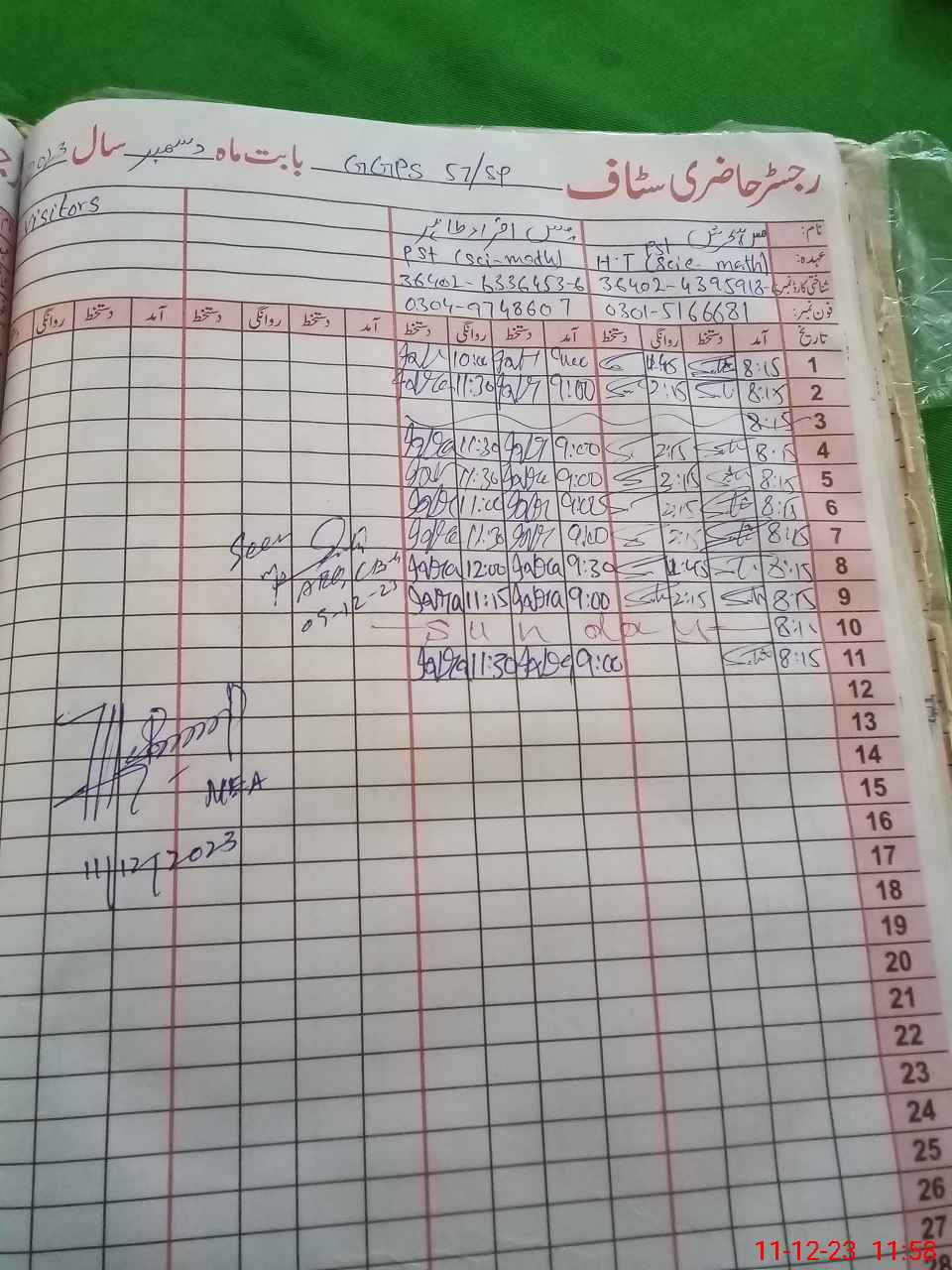 | Name: SA**** Designation: (School Headmaster's/Headmistress's) PST Phone/Cell Number: 03**** |