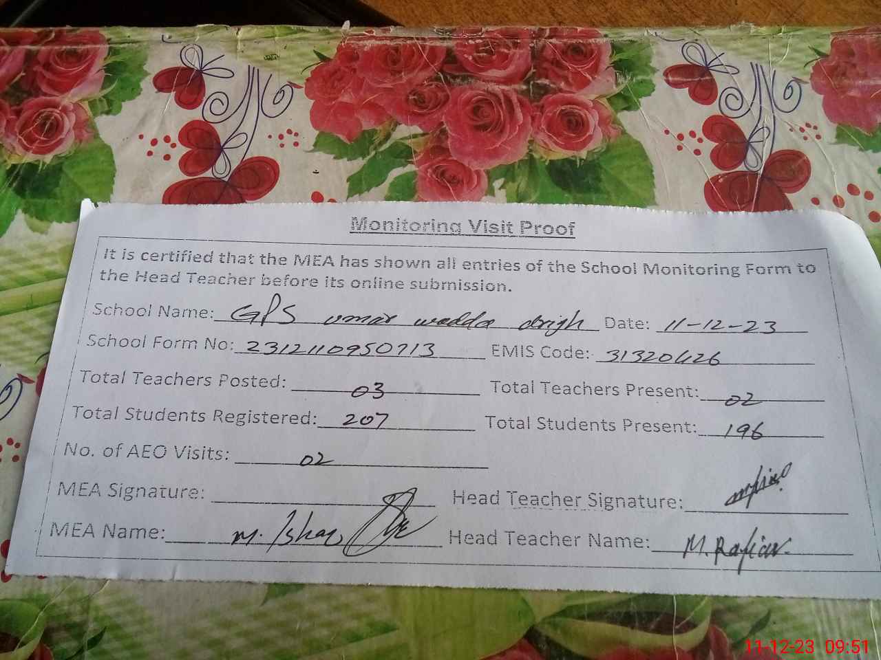 | EMIS Code: 31320426 | Name of School: GPS UMAR WADA DRIGH | |||
