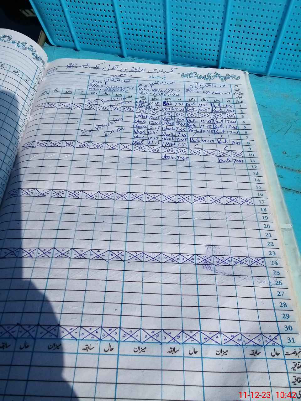 | CNIC | Full Name | Designation | R/C | Absence during last cal. month |