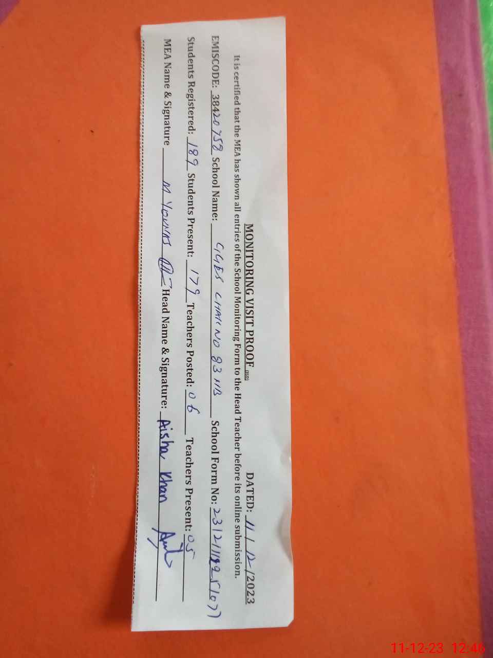 | Certified that this School was Inspected by the Undersigned MEA/DMO Today and the Information Stated Above is as Per Record. | |||||