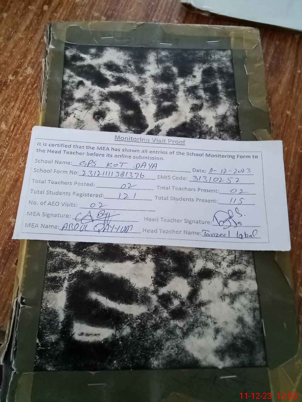 | Attendance Register | Head Teacher | MEA with School | Visit Proof |