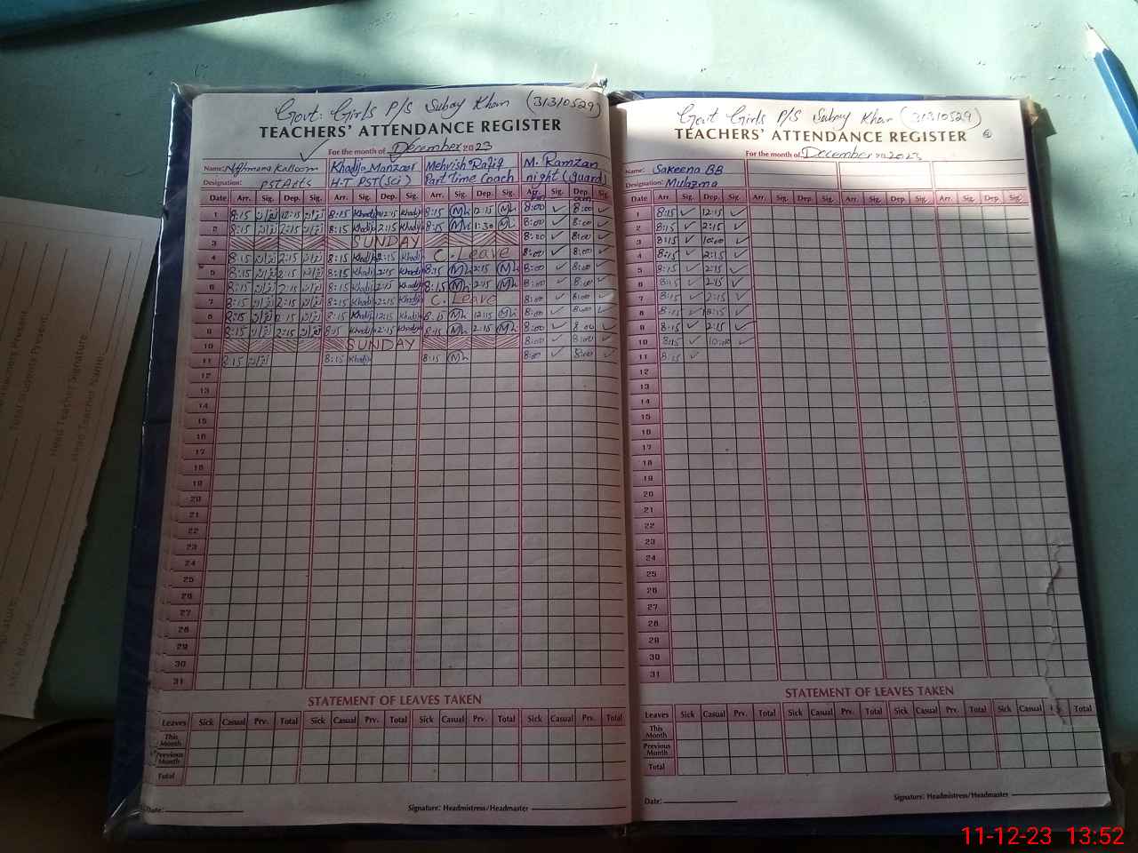 | Name: KH**** MA**** Designation: (School Headmaster's/Headmistress's) PST Phone/Cell Number: 03**** |