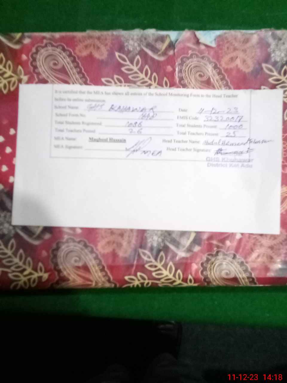 | EMIS Code: 32320017 | Name of School: GHS KOHAWAR | |||