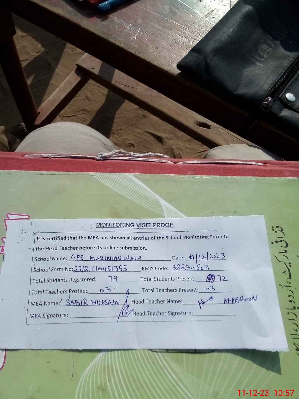 | EMIS Code: 38230503 | Name of School: GPS MADNIAN WALA | |||