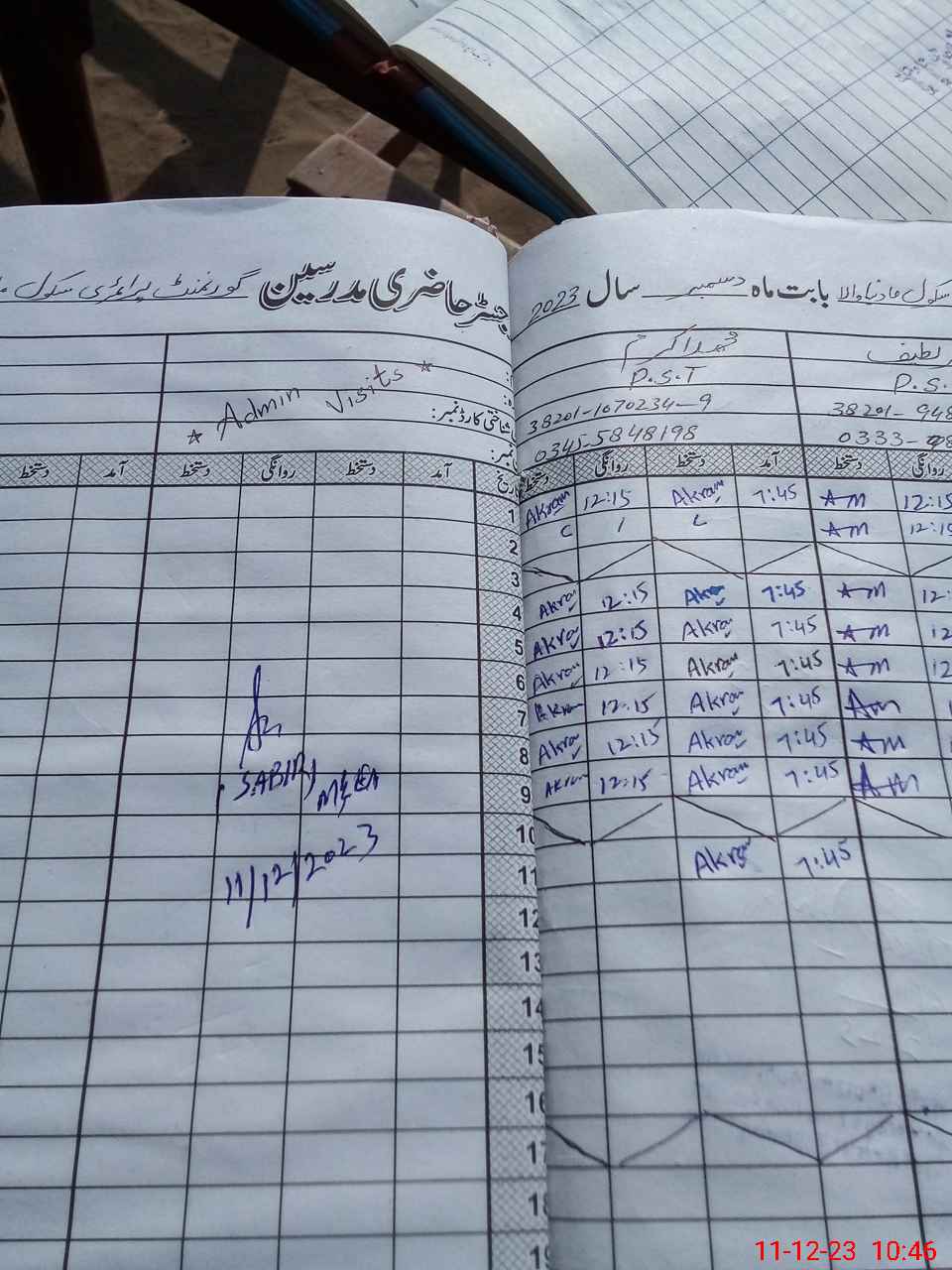 | Name: Mu**** Ak**** Designation: (School Headmaster's/Headmistress's) PST Phone/Cell Number: 03**** |