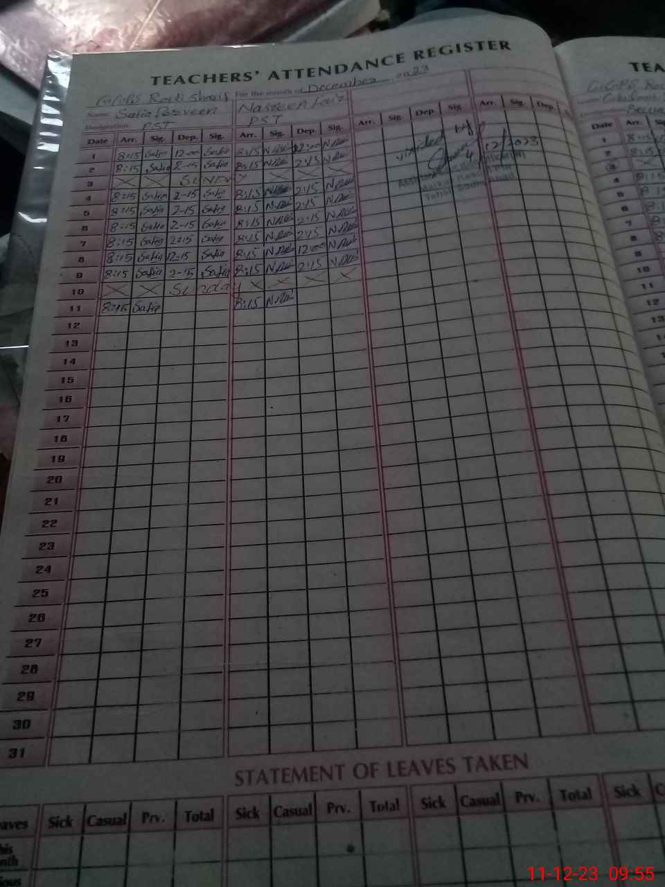 | Monitoring Date: 11-12-2023 | Start Time: 11-12-2023 09:48 AM | End Time: 11-12-2023 10:07 AM | Name of MEA: Mu**** Ta**** | |