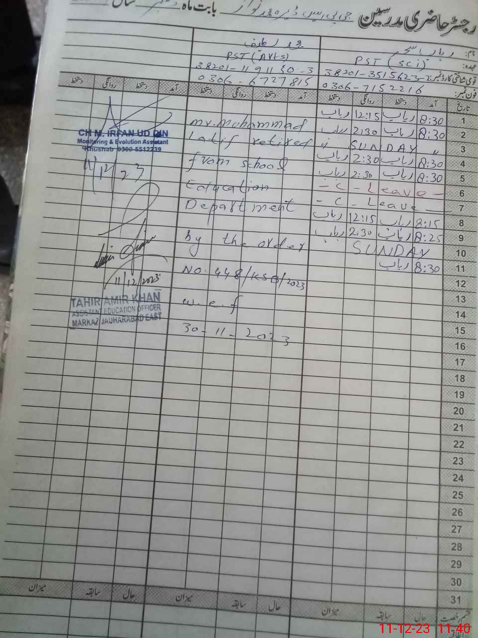 | Name: Mu**** Sh**** Designation: (School Headmaster's/Headmistress's) Ese Sci Math Phone/Cell Number: 03**** |