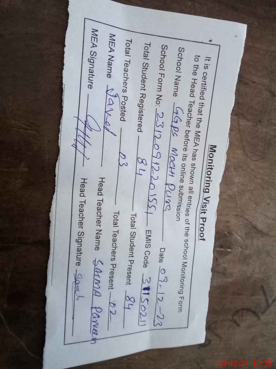 | EMIS Code: 31150211 | Name of School: GGPS MOCHI PURA | |||