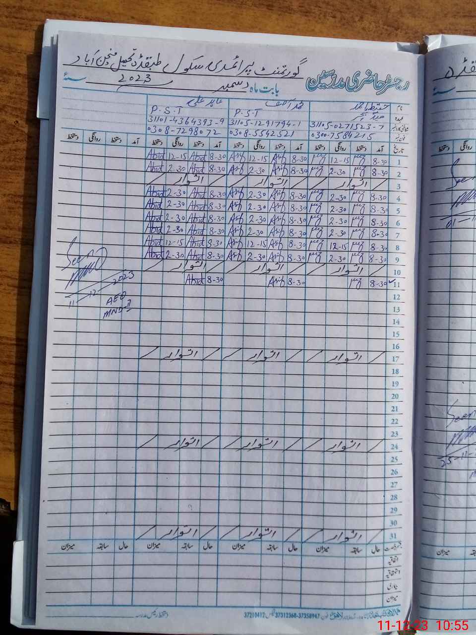 | Name: HA**** AH**** Designation: (School Headmaster's/Headmistress's) PST Phone/Cell Number: 03**** |