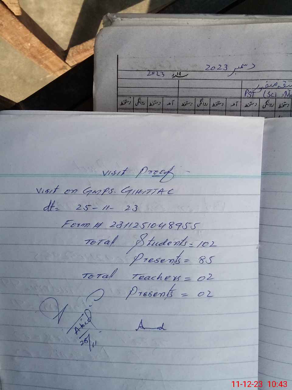 | Attendance Register | Head Teacher | MEA with School | Visit Proof |