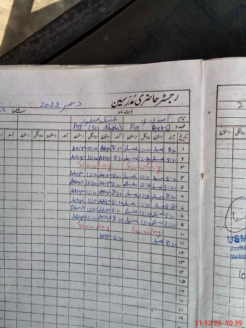 | CNIC | Full Name | Designation | R/C | Absence During Last Calender Month |
