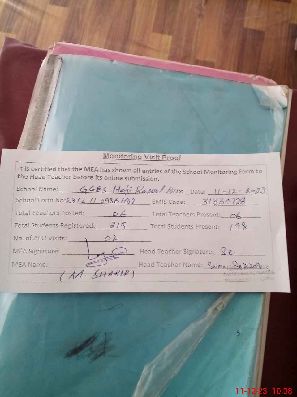 | EMIS Code: 31330728 | Name of School: GGES HAJI RASOOL BAKHSH | |||
