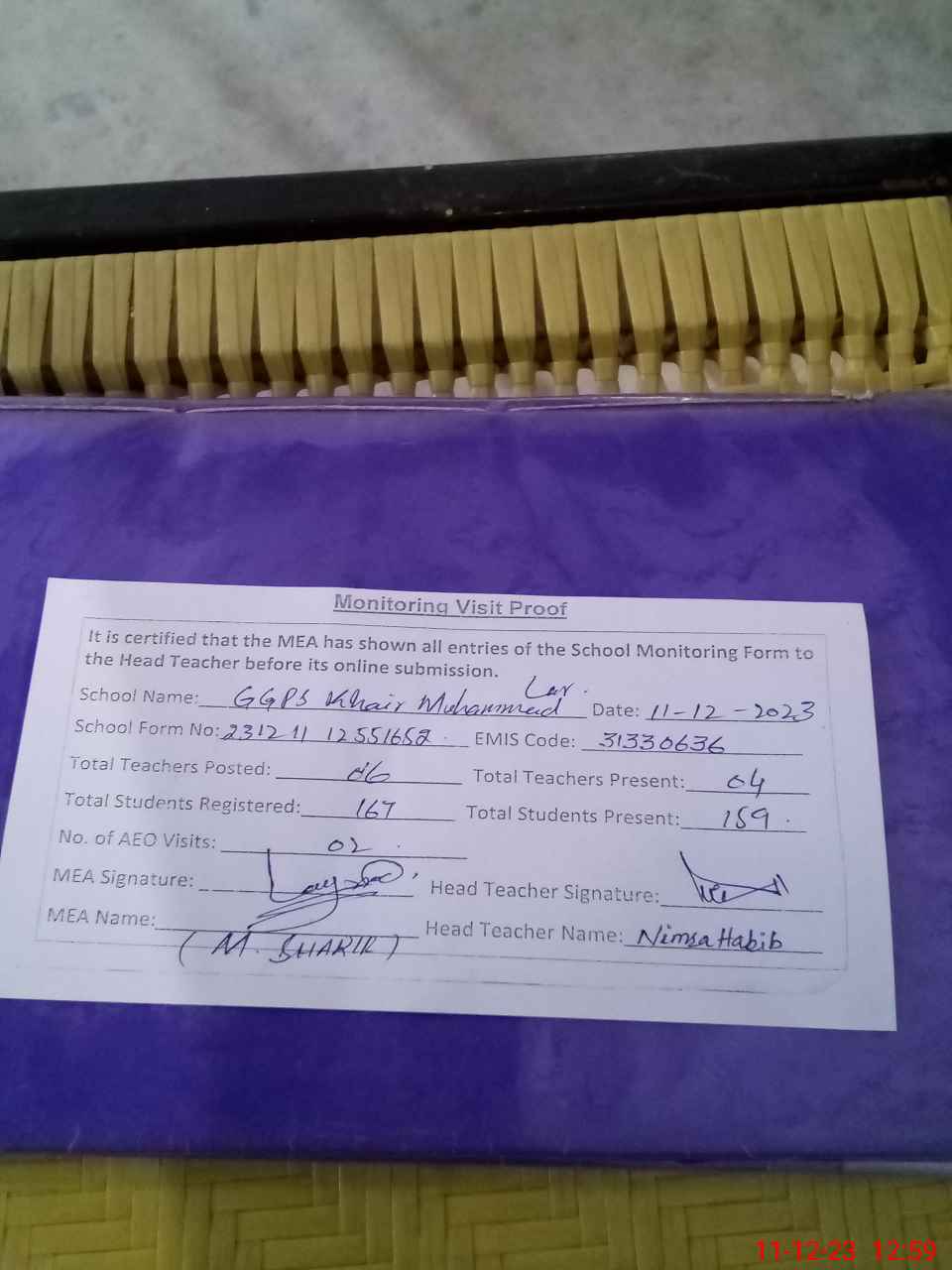| EMIS Code: 31330636 | Name of School: GGPS KHAIR MUHAMMAD LAR | |||