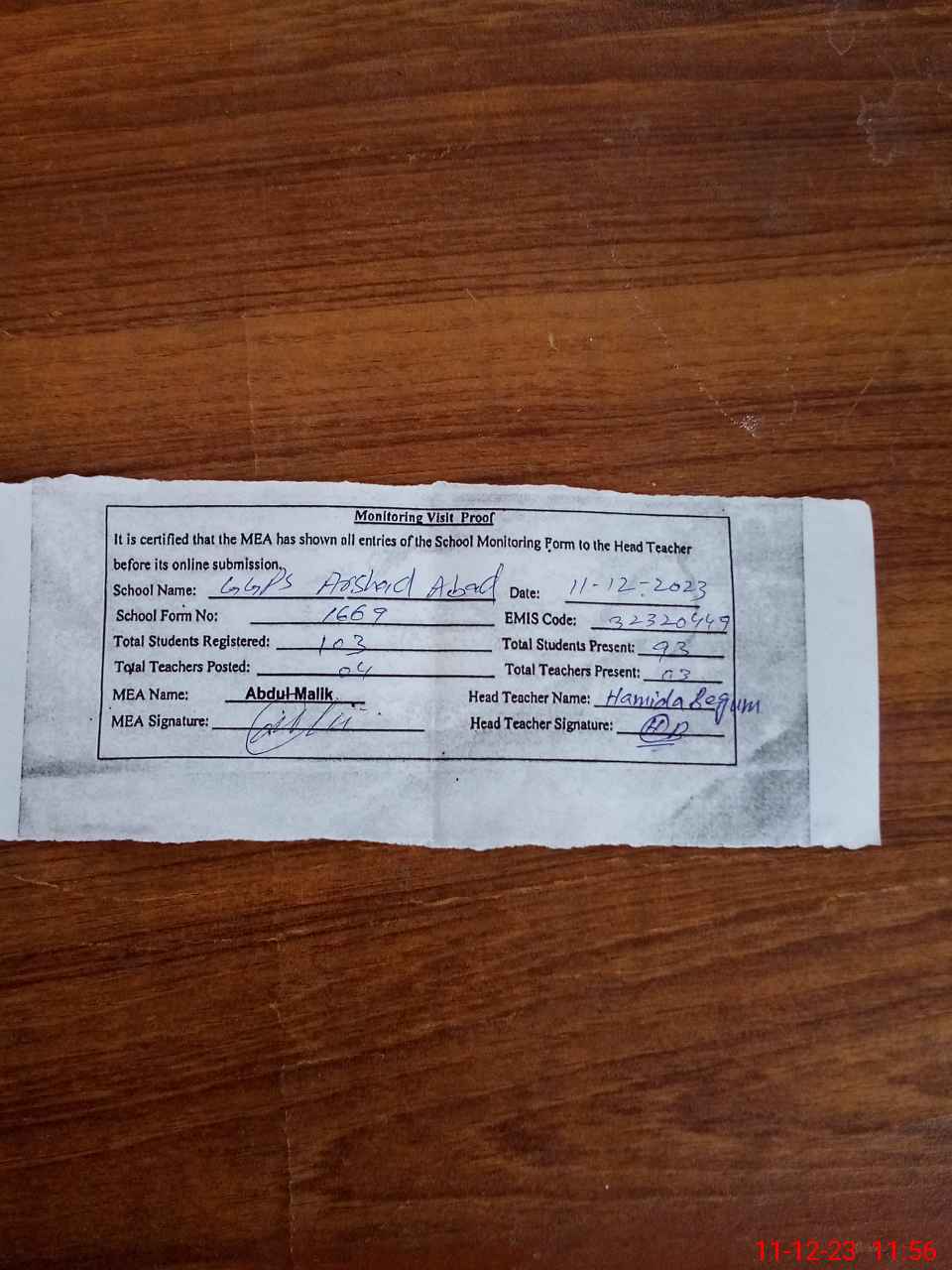 | EMIS Code: 32320449 | Name of School: GGPS ARSHAD ABAD | |||