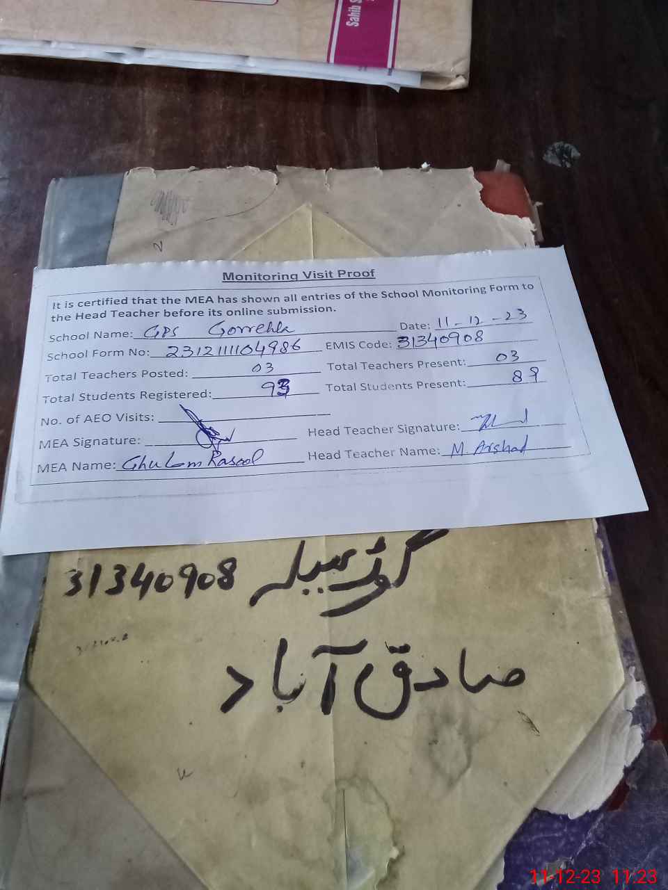 | EMIS Code: 31340908 | Name of School: GPS GHORELA | |||