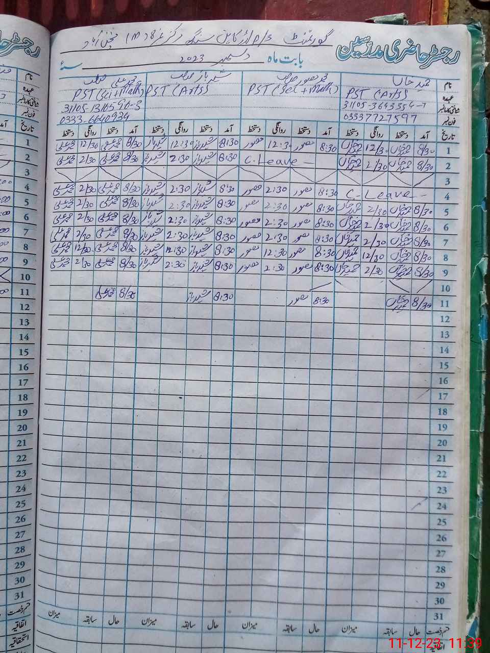 | Name: HA**** KH**** Designation: (School Headmaster's/Headmistress's) PST Phone/Cell Number: 03**** |