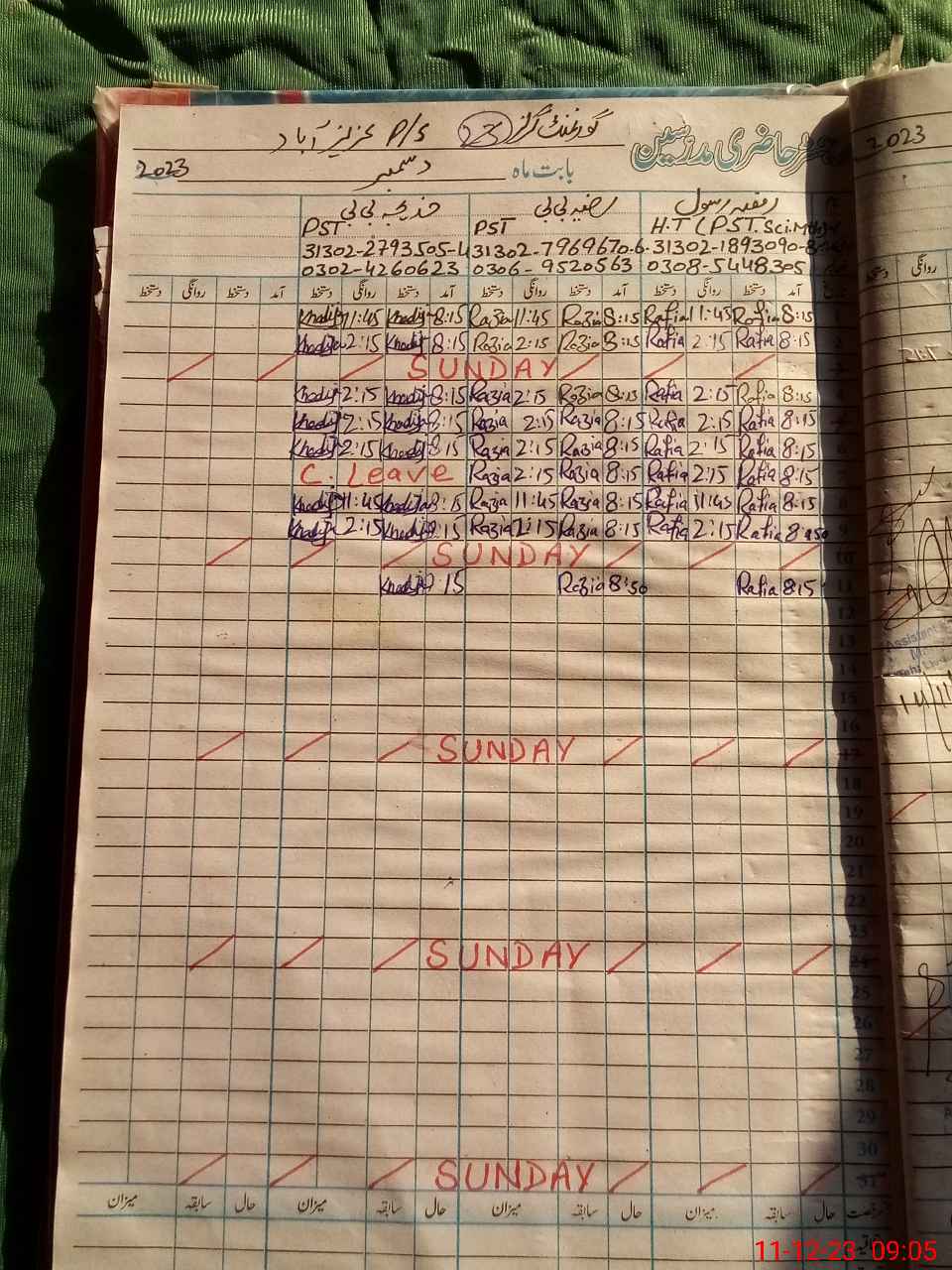 | Name: RA**** RA**** Designation: (School Headmaster's/Headmistress's) PST/PTC/JV Phone/Cell Number: 03**** |