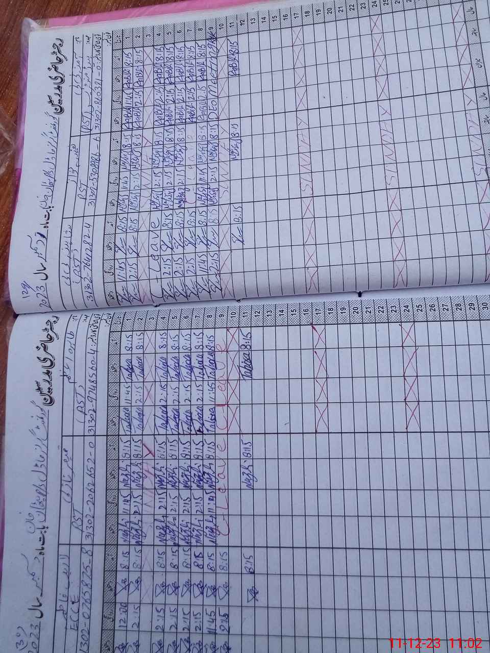 | CNIC | Full Name | Designation | R/C | Absence During Last Calender Month |
