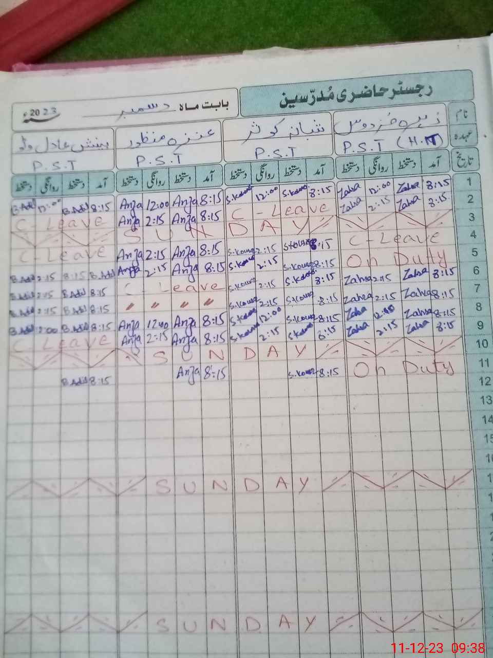 | CNIC | Full Name | Designation | R/C | Absence During Last Calender Month |