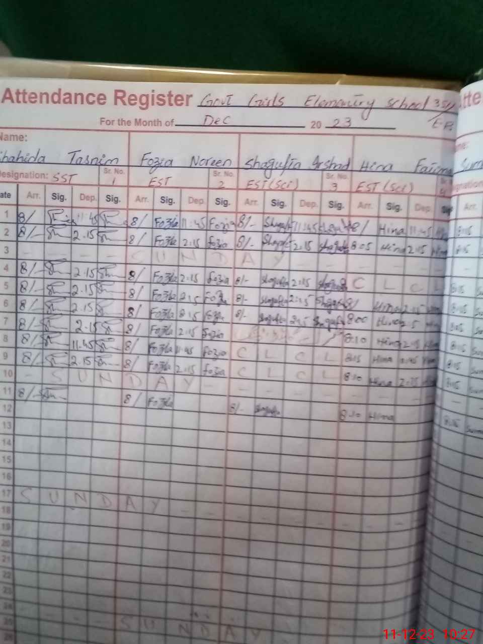 | CNIC | Full Name | Designation | R/C | Absence During Last Calender Month |