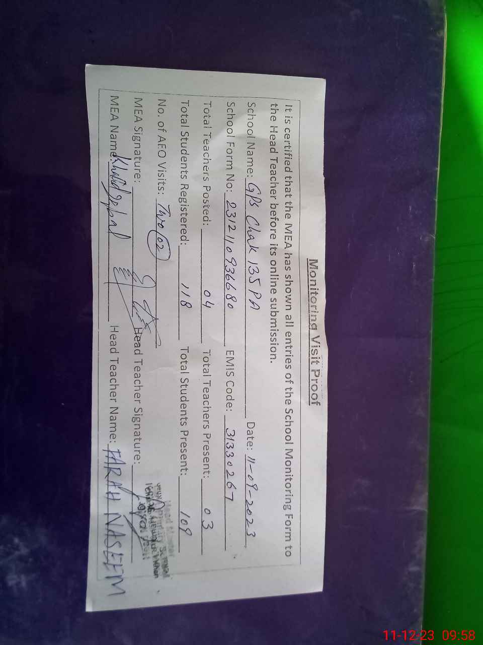 | EMIS Code: 31330267 | Name of School: GPS CHAK 135/A | |||