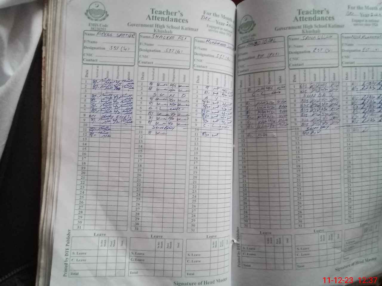 | Name: Sh**** Al**** Designation: (School Headmaster's/Headmistress's) SST G Phone/Cell Number: 03**** |