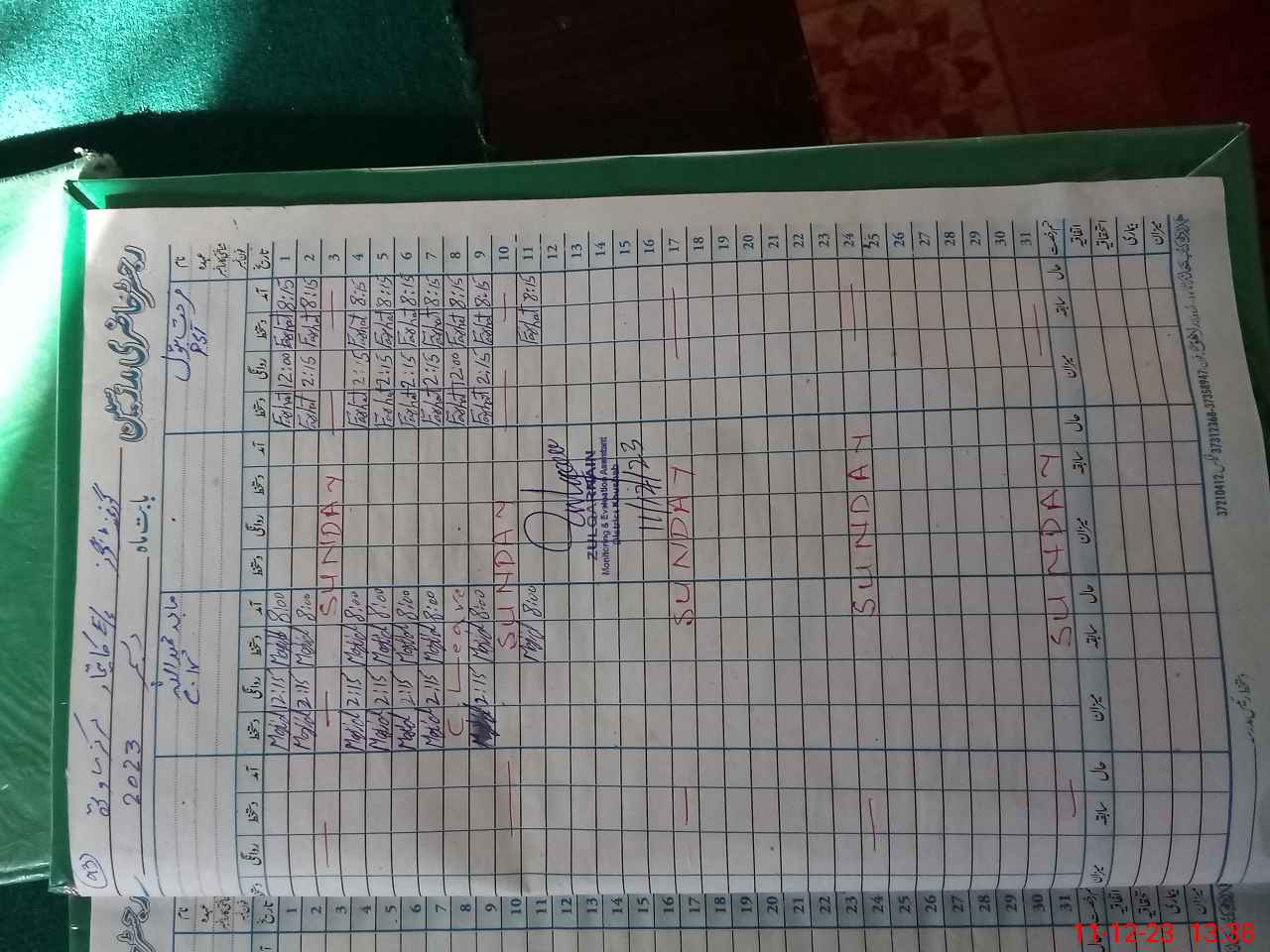 | Monitoring Date: 11-12-2023 | Start Time: 11-12-2023 01:16 PM | End Time: 11-12-2023 01:39 PM | Name of MEA: ZU**** | |