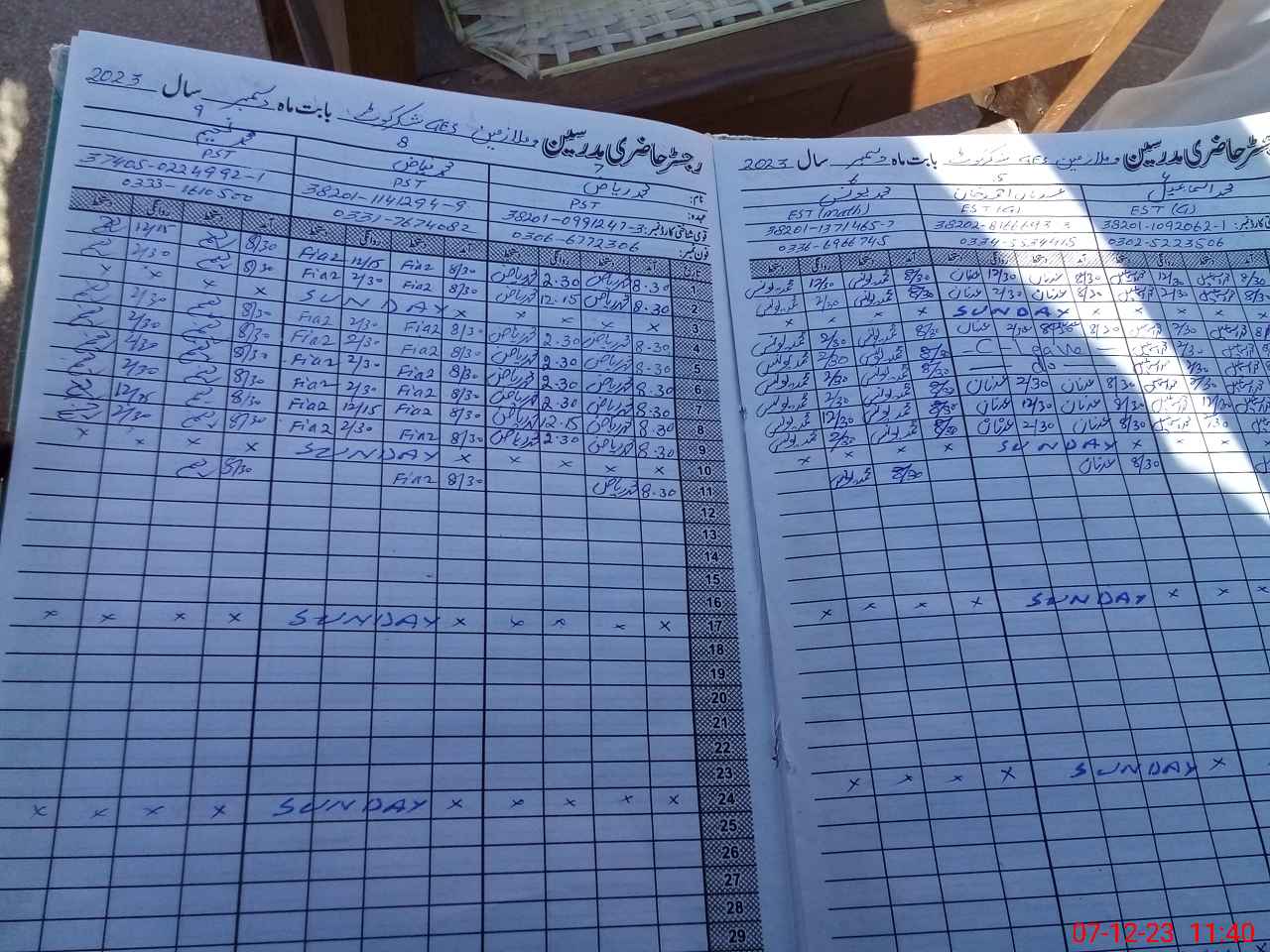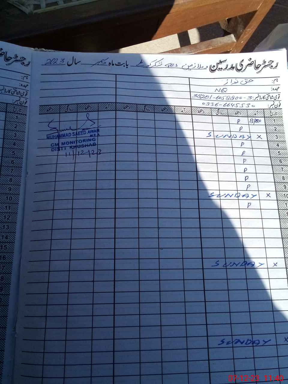 | CNIC | Full Name | Designation | R/C | Absence During Last Calender Month |