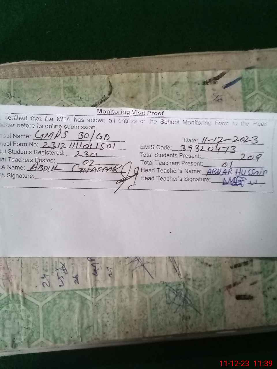 | EMIS Code: 39320473 | Name of School: GMPS 30/G.D | |||