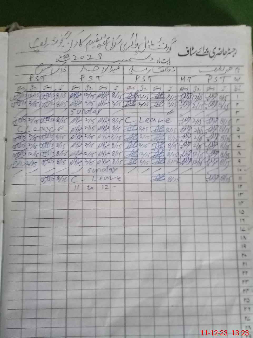 | CNIC | Full Name | Designation | R/C | Absence During Last Calender Month |
