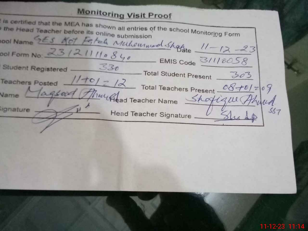 | EMIS Code: 31110058 | Name of School: GES KOT FATEH MUHAMMAD SHAH | |||