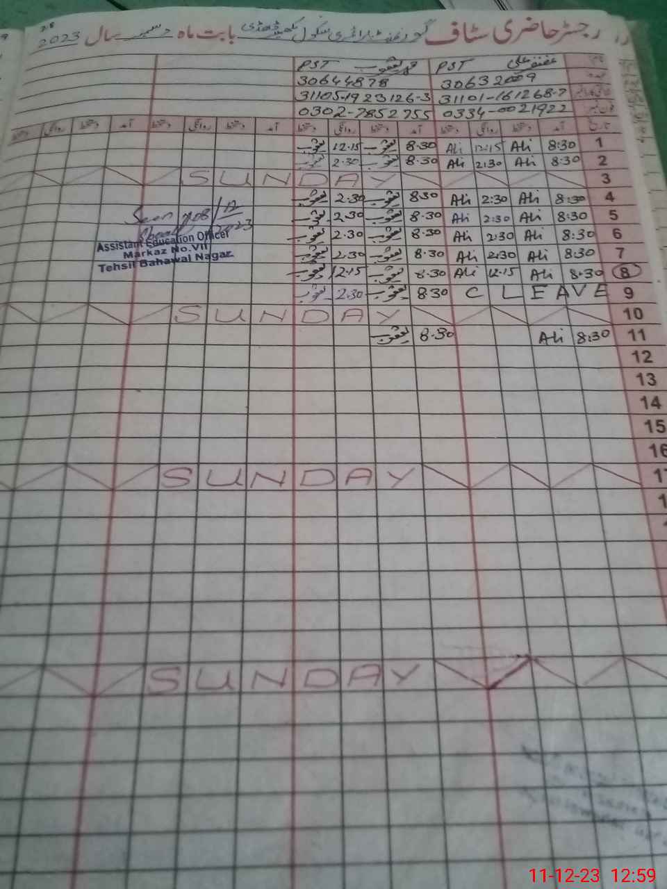 | Name: GH**** AL**** Designation: (School Headmaster's/Headmistress's) PST Phone/Cell Number: 03**** |