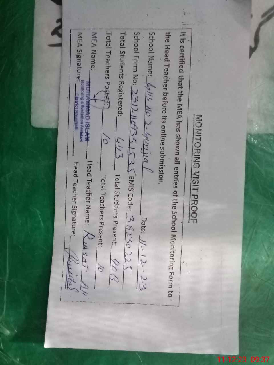 | EMIS Code: 38230225 | Name of School: GHS NO. 2 GUNJIAL | |||