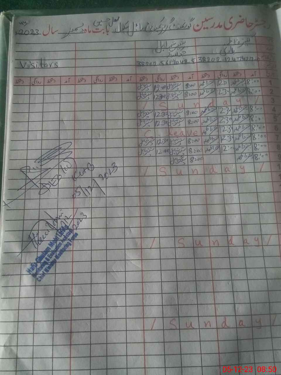 | Name: AS**** BA**** Designation: (School Headmaster's/Headmistress's) PST Phone/Cell Number: 03**** |