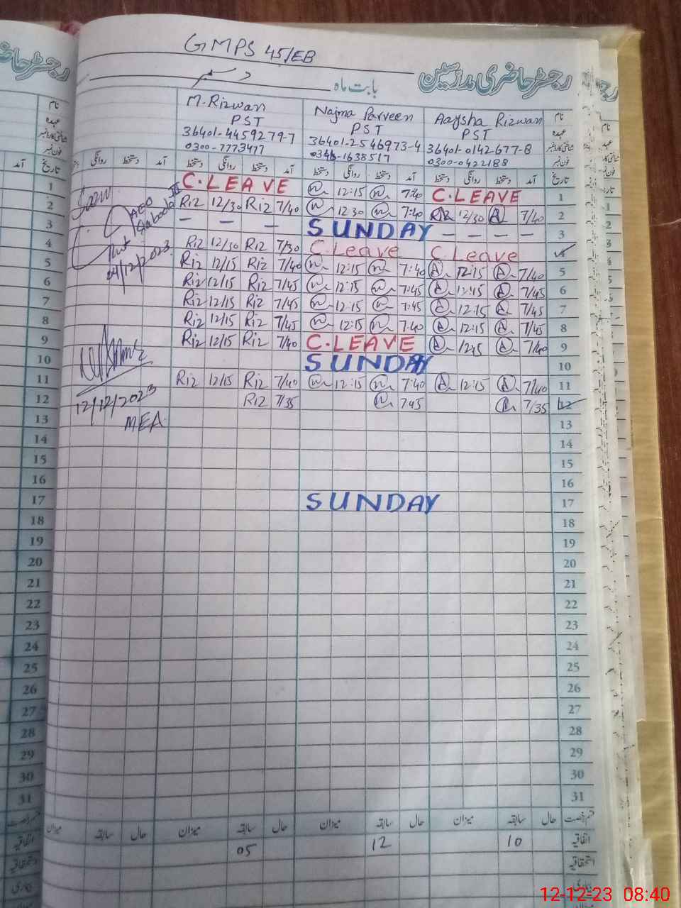 | Name: AA**** RI**** Designation: (School Headmaster's/Headmistress's) PST Phone/Cell Number: 03**** |