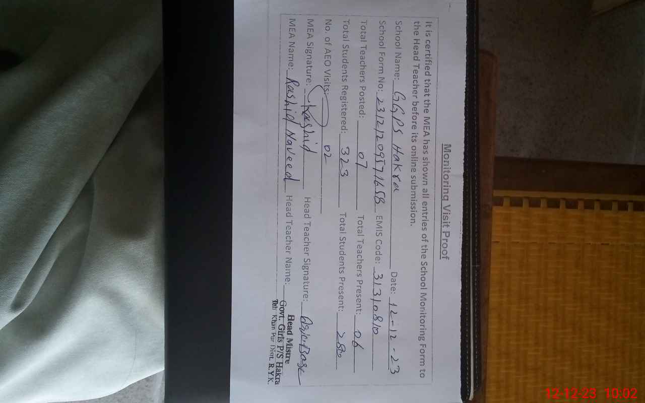 | EMIS Code: 31310810 | Name of School: GGPS HAKRA | |||