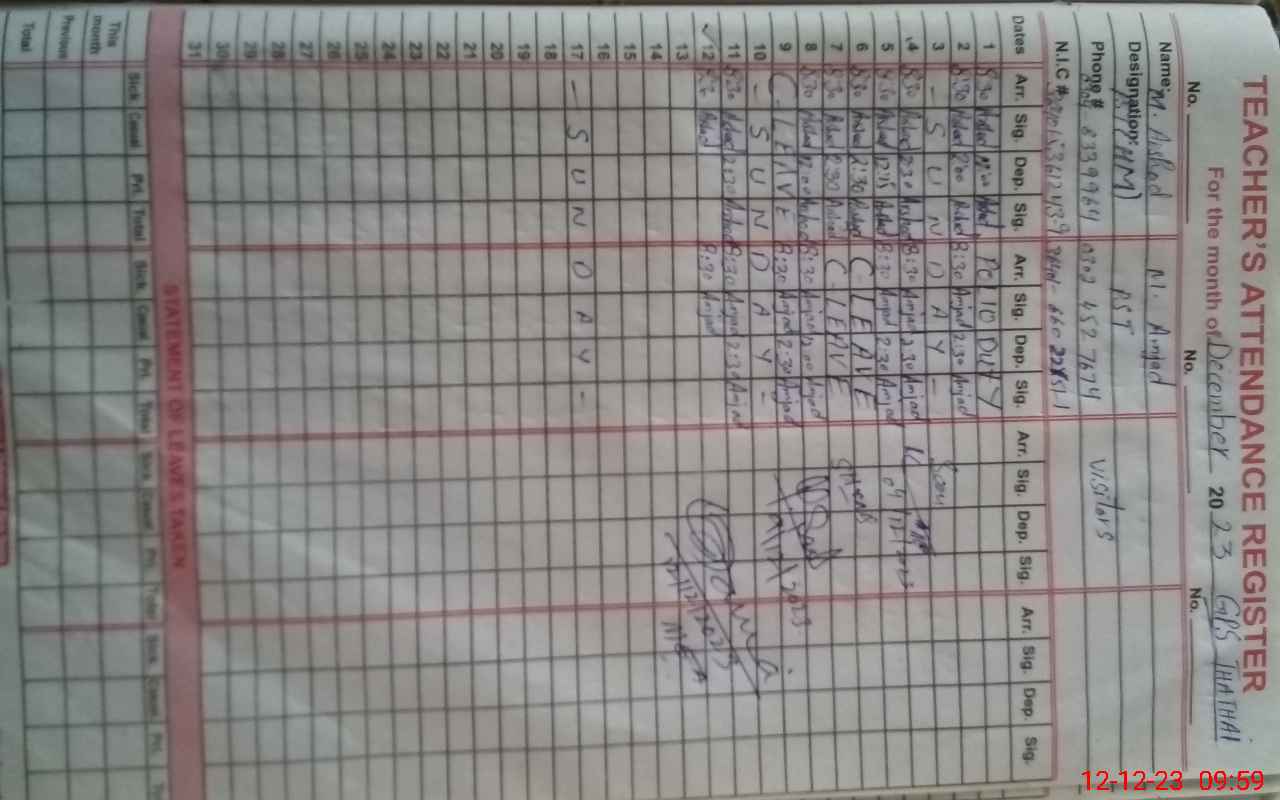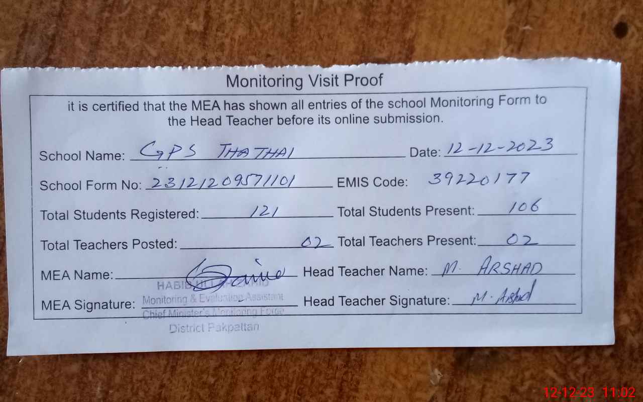 | EMIS Code: 39220177 | Name of School: GPS THATHAI P/O SAME TEH ARIF WALA | |||