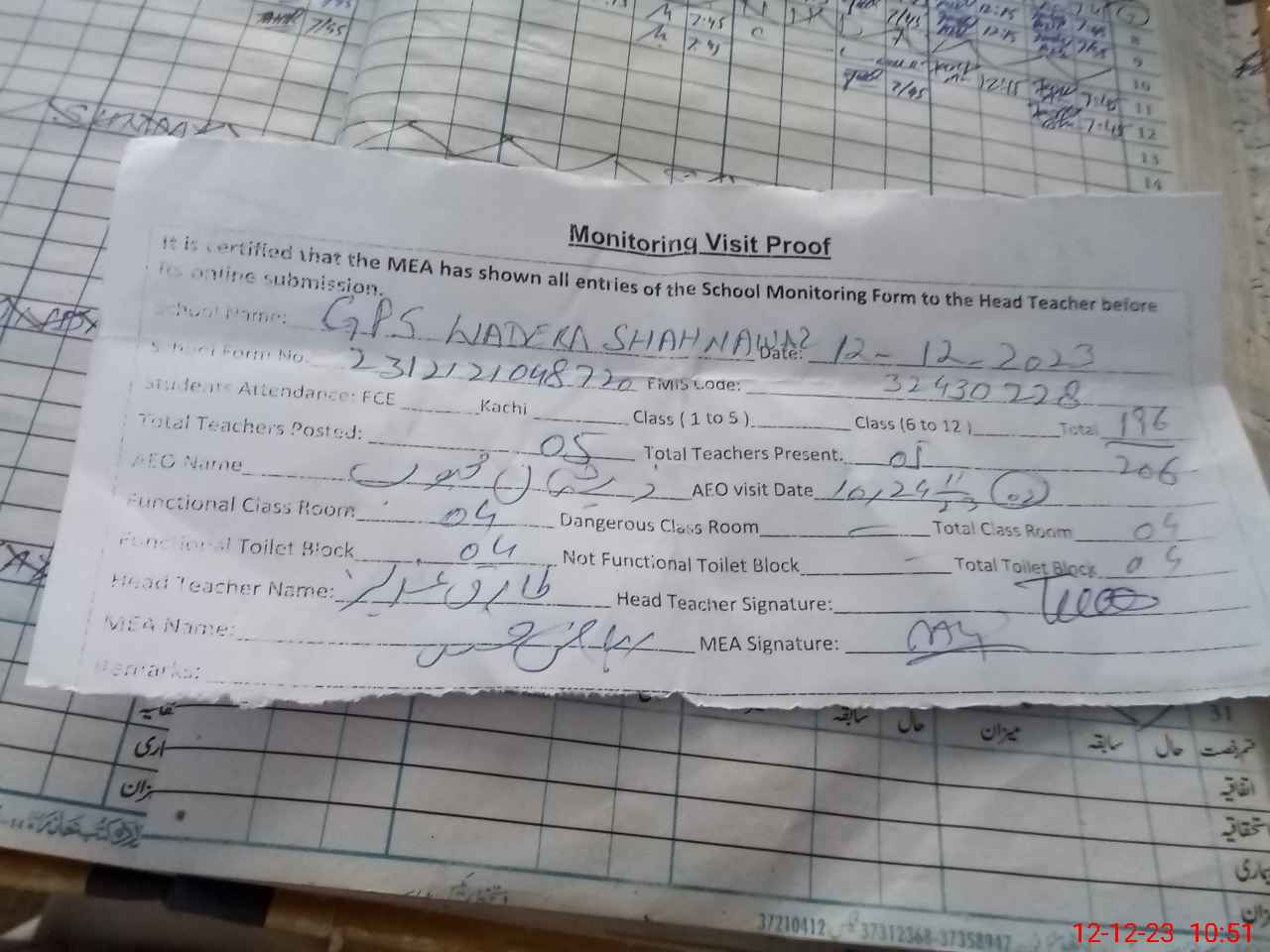 | EMIS Code: 32430228 | Name of School: GPS WADERA SHAH NAWAZ KHAN | |||