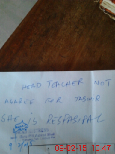 | Remarks (Use Separate Page if Required): Head Teacher not agree for tasmir | |||||