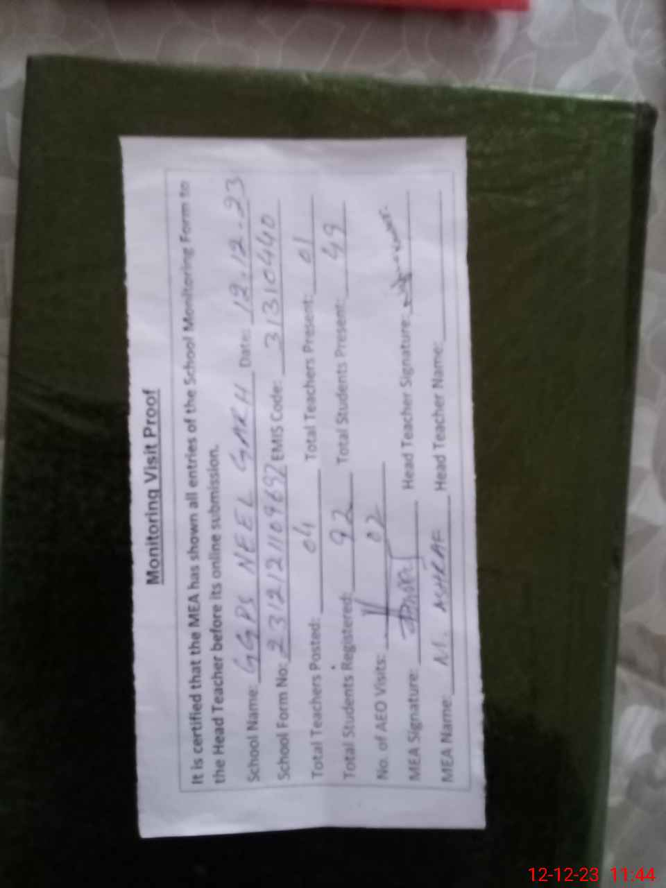 | EMIS Code: 31310440 | Name of School: GGPS NEEL GARH | |||