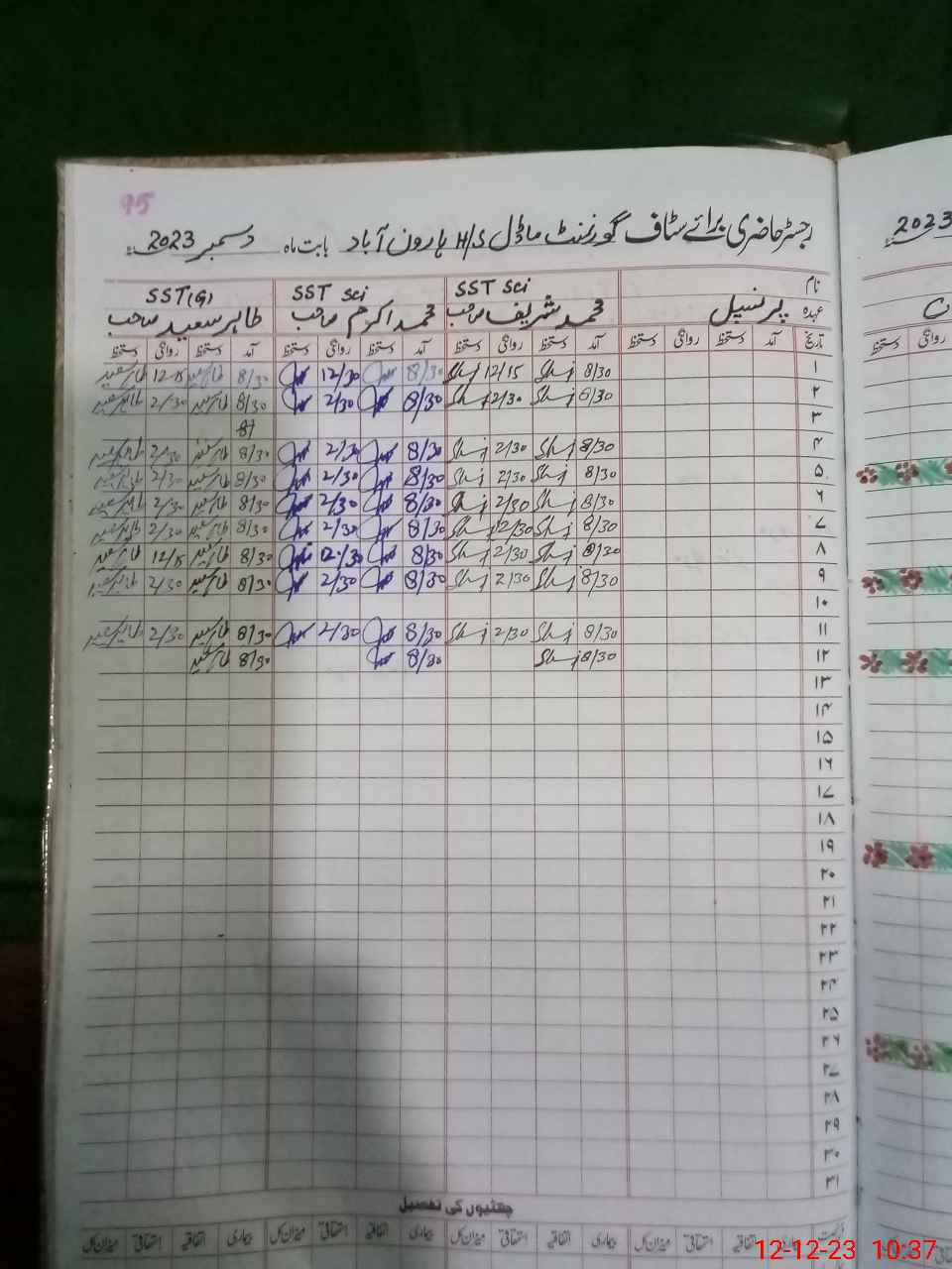 | CNIC | Full Name | Designation | R/C | Absence During Last Calender Month |